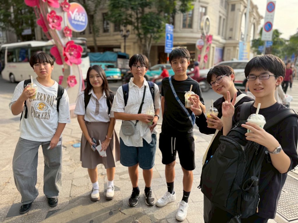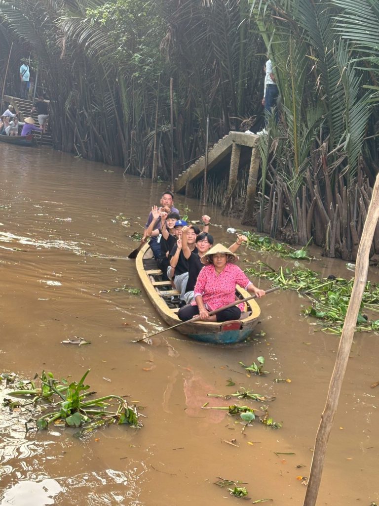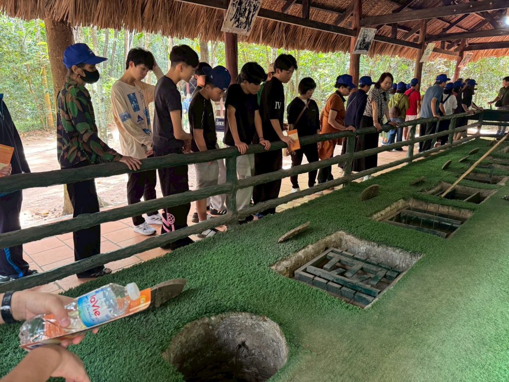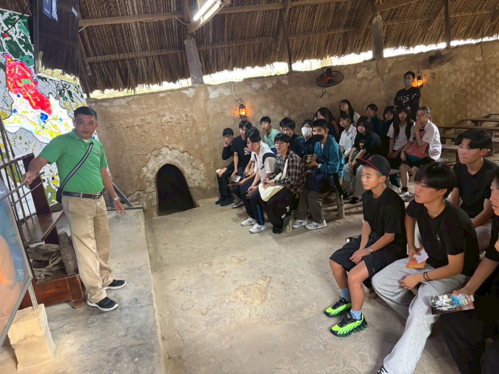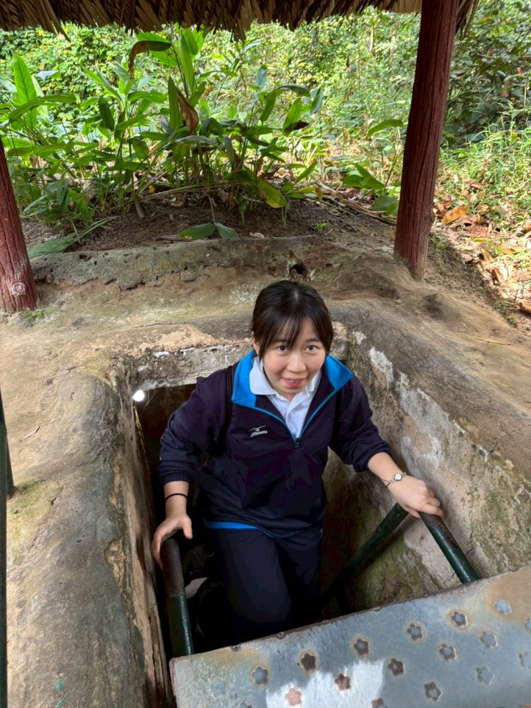 現地では、戦争証跡博物館の見学、クチトンネル体験、メコン川クルーズ、現地高校との学校交流、班別市内学習、ベトナム伝統おもちゃ作り体験、ホーチミン市内観光、水上人形劇見学など、多彩なプログラスを体験しました。